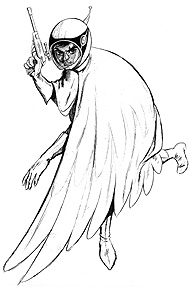 A tighter update version of the hero. He still has a fairly standard helmet design, but the gloves and boots appear to be a uniform color. Note the pistol that is also a holdover from the previous Kuri sketches.